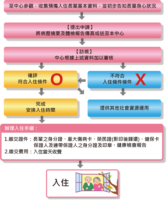 二、自費就養者:由本人或親屬、法定代理人檢附左列表件向本中心行政組申請。